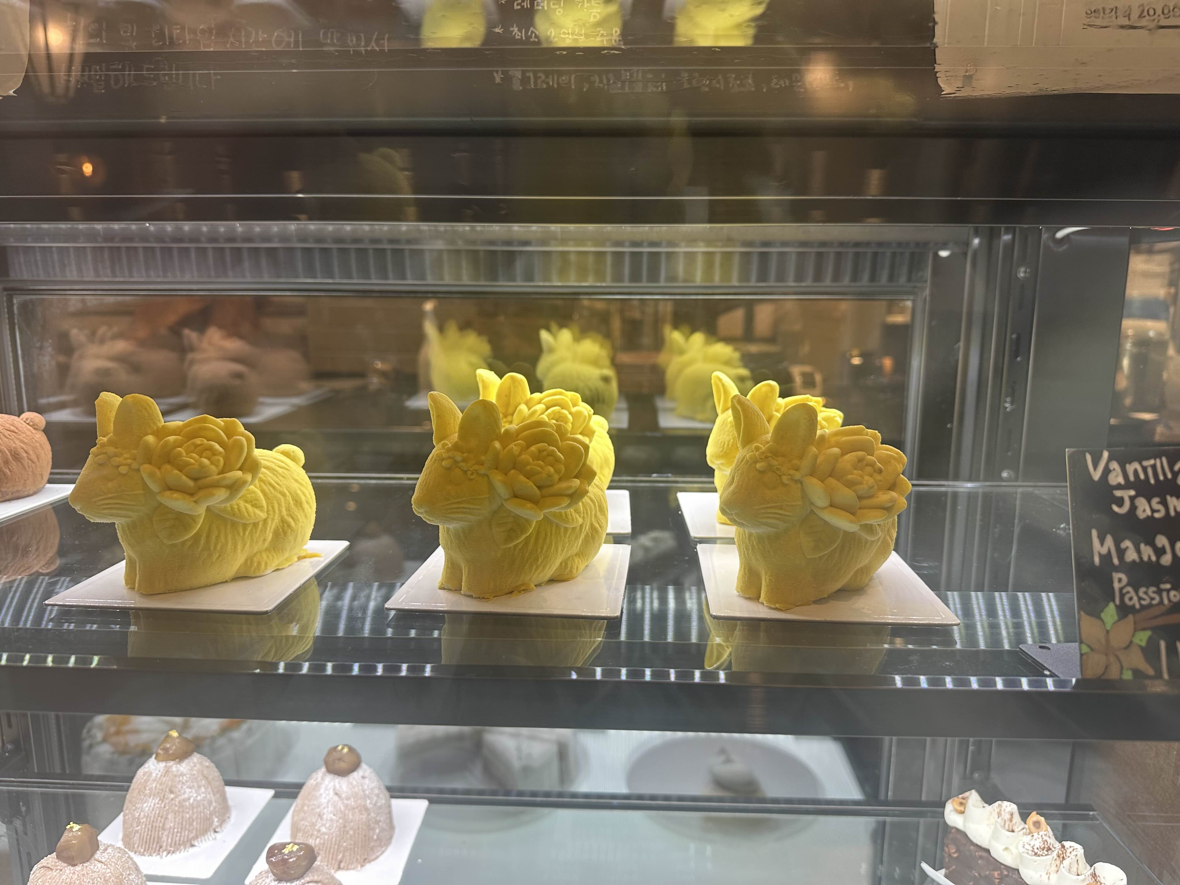양인가? 싶었는데 토끼입니다 토끼모양을 한 케이크 였어요