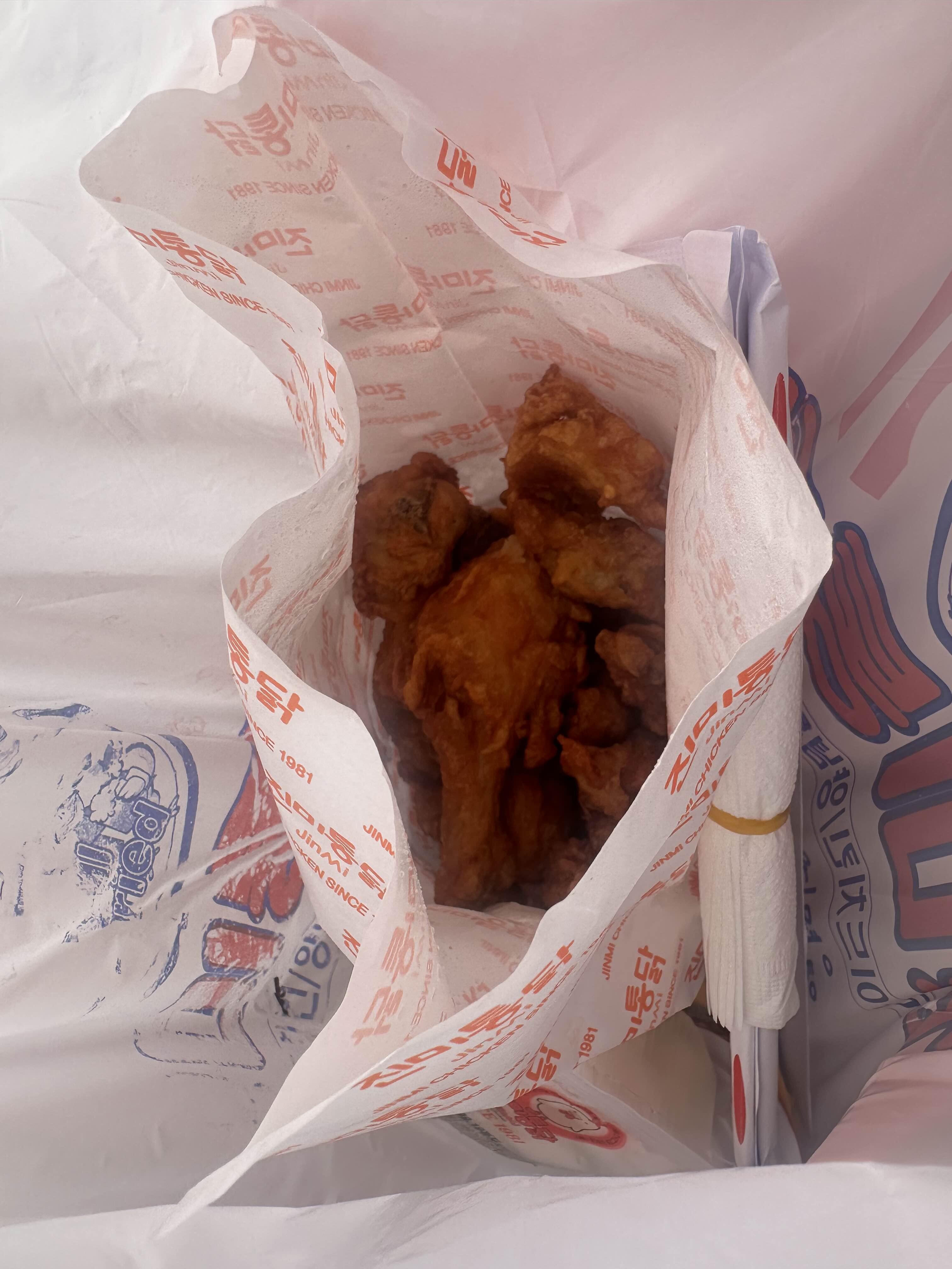 박스가 아닌 종이봉투에 닭이 담겨져 나왔어요