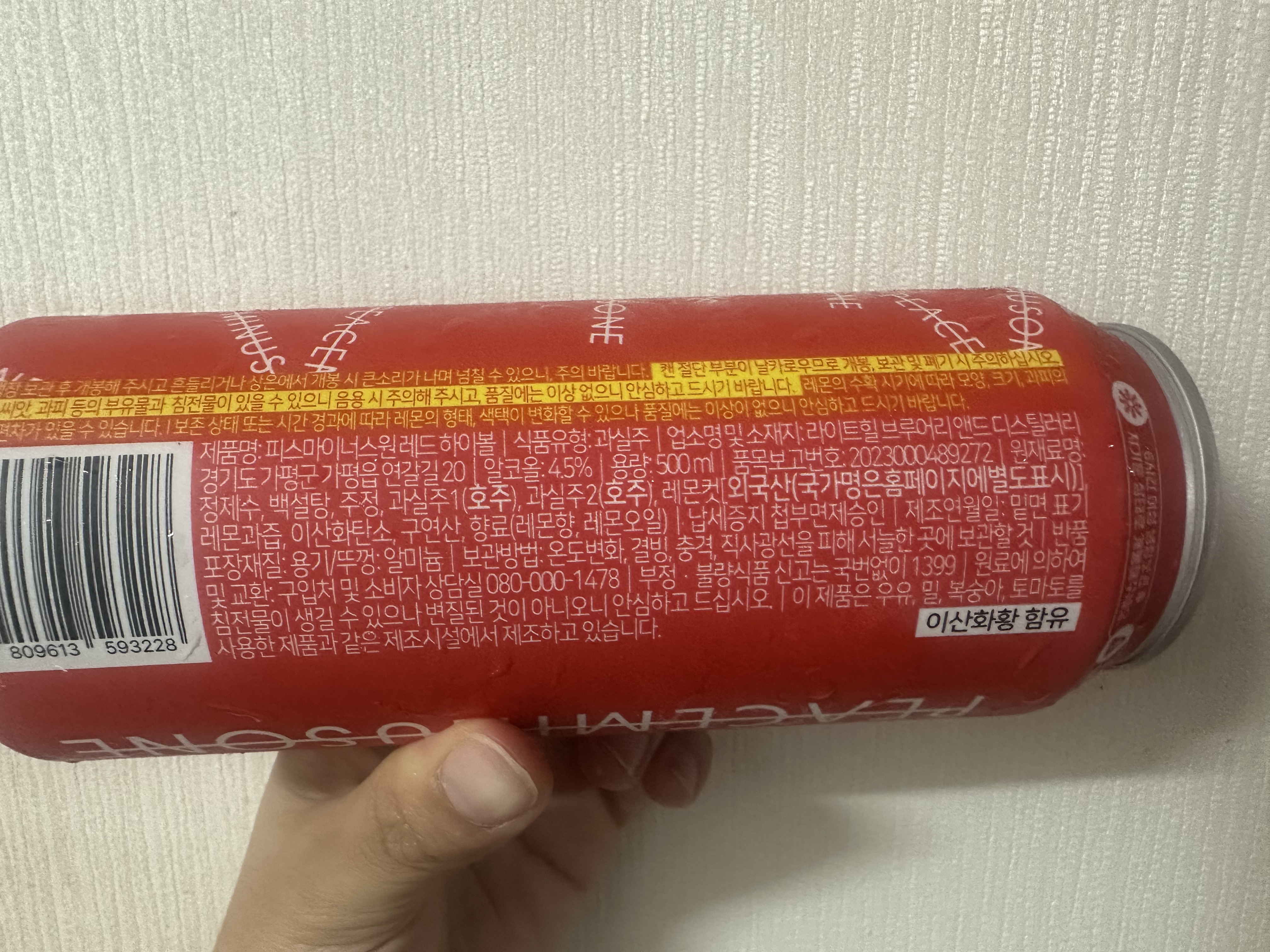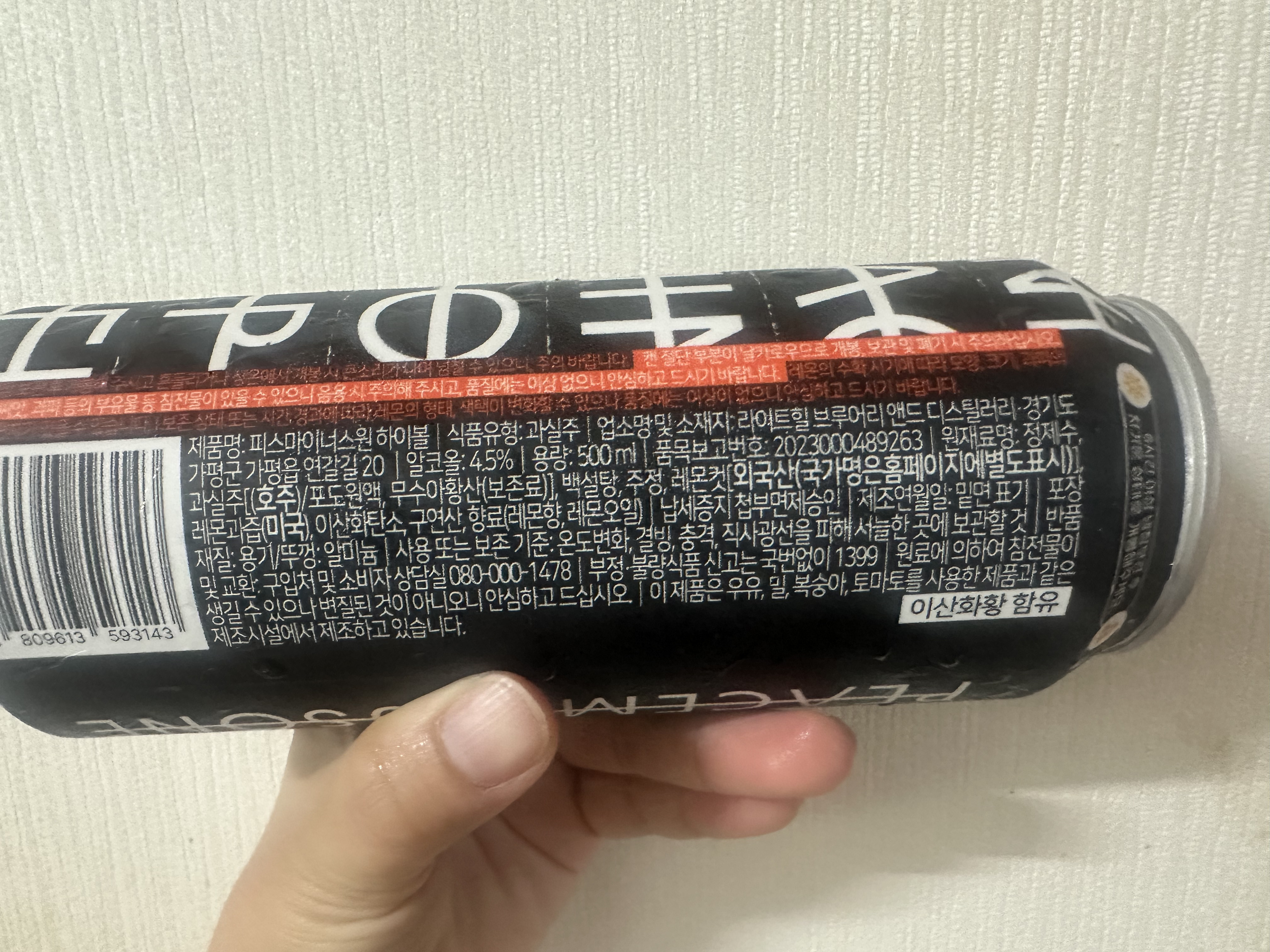 피스마이너스원 하이볼은 알콜 4.5%에 500ml 입니다