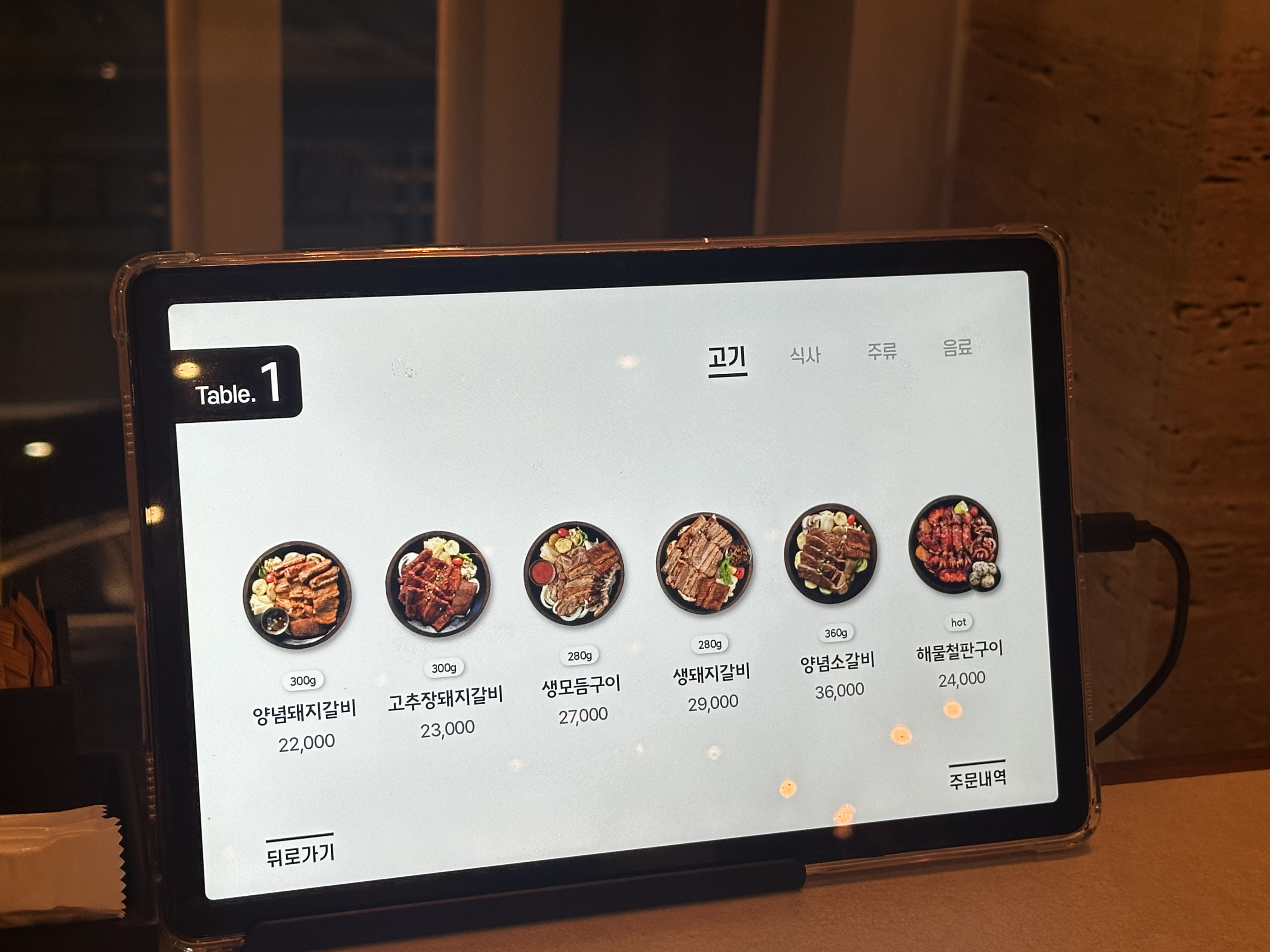 추가밑반찬이 필요하다면 태블릿을 통해서 주문이 가능해요